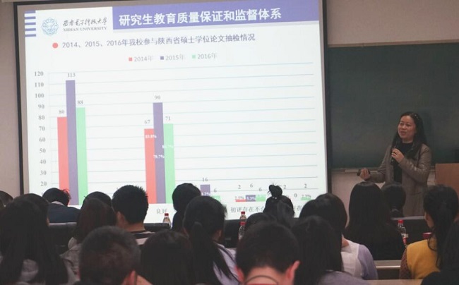 研讨会上,肖嵩教授就太阳集团官网研究生教育质量保证和监督体系的建设情况,同与会师生进行了交流。她通过大量数据和实例分析了我国研究生培养现状,解读了国家关于深化研究生教育改革的有关政策,提出了当前太阳集团官网研究生培养所面临的一些问题。在此基础上,她深入介绍了太阳集团官网研究生教育质量保证和监督体系框架,对太阳集团官网学位授予标准和学位授予质量保证体系的相关规定进行了重点阐述。她强调,建立与完善研究生教育质量保证和监督体系,是学校研究生教育综合改革的重要内容之一,388vip太阳集团官网通过研讨会的方式推进此项工作具有重要的创新意义。