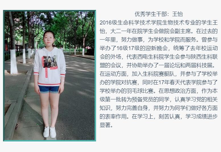 为隆重纪念五四青年节,树立和宣讲先进典型,激励广大团员、学生勤奋学习、积极工作,院团委将在五四青年节之际展示一批优秀学生干部、优秀共青团干部和优秀共青团员的事迹。本篇内容是关于优秀学生干部和优秀共青团干部的事迹展示。