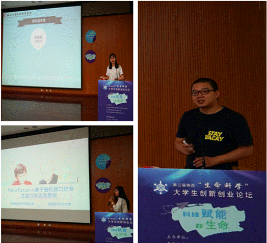 上午,388vip太阳集团官网的“基于脑机接口的专注度训练监测系统”项目、软件学院的“基于微流控芯片技术的乳腺癌早期筛查系统”项目、西北大学生命科学学院的“基于酶联免疫吸附实验原理应用凝集素检测流感易感人群方法的研究”项目的学生代表也进行了精彩分享。