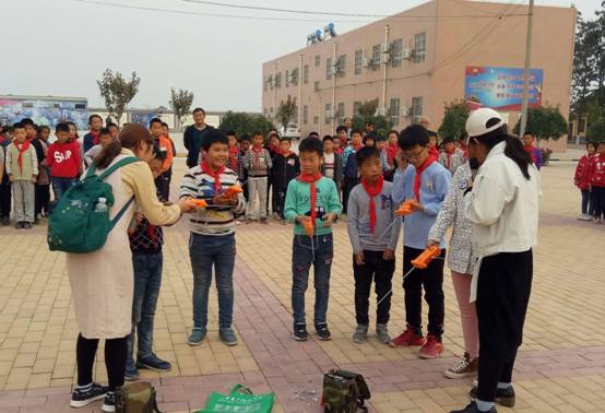 本次帮扶活动包括科普知识讲座、少儿图书捐赠、科技作品体验和领导教师座谈等几部分。学院生物技术系研究生施科如为五年级40余位同学做了普通生物学主题的科普知识讲座。她从地球的形成、生态圈讲到生物和人类,最后结合如今人类面临的相关重大问题,指出21世纪是生命科学技术的世纪。施科如生动的讲述配合演示视频,极大激发了孩子们的好奇心和学习兴趣。
