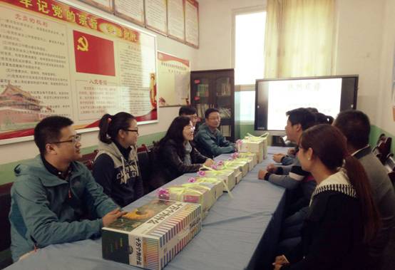 在学生体验科技作品的同时,学院教师与钤铒小学相关负责人举行了座谈会,双方对近两年的扶贫对接工作进行了总结梳理,确定了增进互访、加强信息交流的后续工作原则。会后,双方举行了简短的捐赠仪式,学院向钤铒小学捐赠了学生课外读物、传统文化启蒙等相关少儿图书共计140余册。