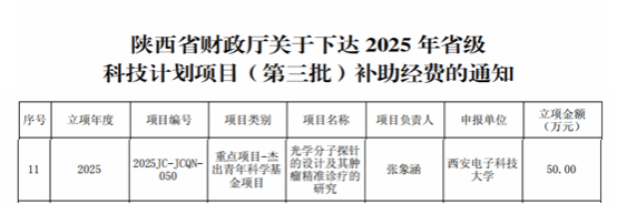 据了解,陕西省杰青项目旨在支持在基础研究方面已取得突出成绩的青年学者开展深入研究,培养一批进入国内相关领域前沿的优秀学术带头人。西安市科协青年人才托举计划项目和陕西省科协青年人才托举计划项目,则聚焦于扶持具有创新潜力的青年科技人才,助力他们在科研黄金期迅速成长。