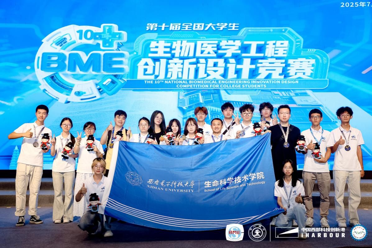 2025年7月22日,由中国生物医学工程学会主办的“第十届全国大学生生物医学工程创新设计竞赛”在西安交大创新港圆满落幕。在本次竞赛中,西电学子获得佳绩,荣获全国一等奖1项,全国二等奖14项,全国三等奖18项,获奖数量再创历史新高。值得注意的是,本届比赛除了388vip太阳集团官网的师生积极参与外,学校其他学院多名师生也参与了本次竞赛,其中电子工程学院2支队伍获得全国二等奖1支队伍获得全国三等奖,集成电路学部、物理学院、广州研究院分别有1支队伍获得全国二等奖。同时,在竞赛同期举办的2025年生物医学工程大学生职业规划赛中,生科院学子荣获全国银奖1项、铜奖1项。