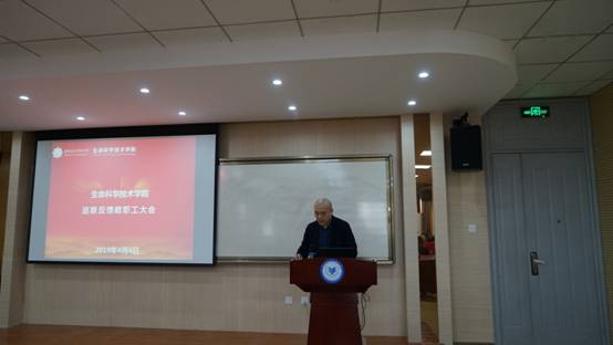 田捷首先代表学院全体教职工对学校党委对生科院的关怀和重视,学校党委第二巡察组对学院的关心和支持表示感谢。