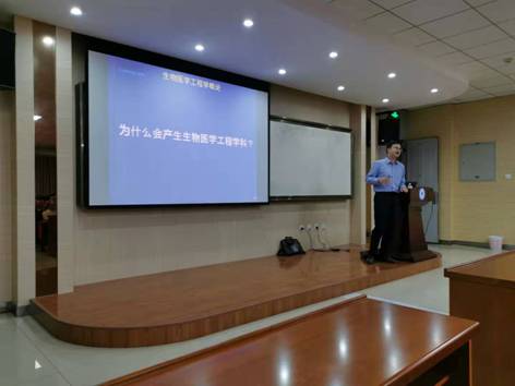 “从远古时期的蒙昧到文艺复兴时期的科学,医疗保健体系的逐渐形成推动了生物医学工程”的产生和发展。李军老师以医疗保障体系的形成过程为线索,为同学们讲解生物医学工程产生的原因。接着,李老师又通过展示疾病预防、医学诊断、医学治疗和医学康复中的生物医学工程向同学们系统展示了生物医学工程的现状,并对当前生物医学工程的研究热点及21世纪生物医学工程研究前景进行了举例说明。