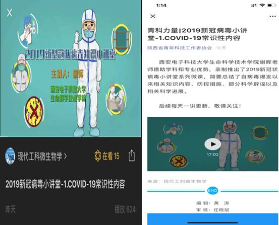 微课一经上线,很快引发校内外师生强烈反响,第一讲内容上线不到一天,仅微信平台播放量已破600,同时被陕西省青年科协等诸多公共媒体平台相继转发推广,受到了广大师生的一致好评。