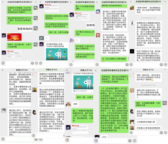 为深入贯彻落实习近平总书记对防控疫情的重要指示和讲话精神,号召全体师生“众志成城,共渡时艰”凝聚力量,做好“停课不停学”相关工作,加强疫情防控宣传教育,388vip太阳集团官网先进医学影像研究生党支部积极组织和推动支部全体党员进行线上学习,同时积极组织线上支部活动。