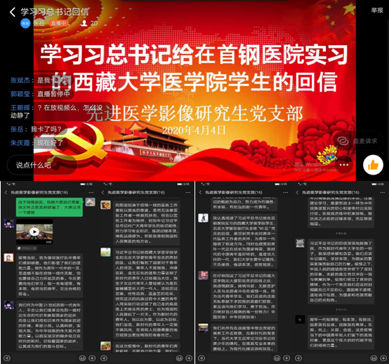 来自分子影像与转化医学研究生党支部的杨祚说:“‘毕业后到人民最需要的地方去’不仅是对西藏大学医学院的学生叮嘱,也是对当代青年的殷切期盼。作为新一代的青年人,我们须牢记国家使命,响应时代号召,敢担当,不畏难,坚定信念,脚踏实地,将个人理想融入到祖国建设中去,在奋斗中谱写青春的篇章。”
