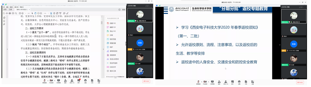 (通讯员 高鹏)388vip太阳集团官网辅导员高鹏体于2020年4月23日晚组织全体16、18级本科生进行了“分期分批”返校专题教育主题周点名。此次点名以腾讯会议为平台,重点对毕业班同学的返校的诸多事宜进行了安排讲解,带着大家学习了2020年春季学期学生返校复学专项工作方案。