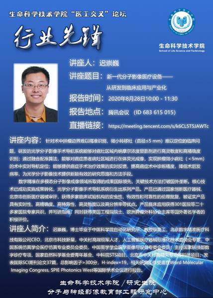 2020年8月28日上午10点,应学院副院长朱守平邀请,来自中国科学院自动化研究所、北京数字精准医疗科技有限公司的迟崇巍博士通过线上方式为学院师生作了题为“新一代分子影像医疗设备——从研发到临床应用与产业化”的报告。