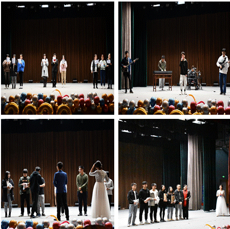 接下来,就是大家最期待的节目环节了。首先由本科新生501宿舍全体同学等为大家带来开场舞《酒醉的玫瑰》,“土嗨”的音乐,“曼妙”的舞姿,将现场气氛在一瞬间拉到了顶点。接下来,同学们演唱的《日不落》、《月半小夜曲》、《老男孩》等歌曲展现了同学们动听的歌喉,欢乐的相声《西游新说》、《阿轩金店》逗得观众捧腹大笑,还有热烈的舞蹈《Light up》引起全场的欢呼,来自学校TON乐队的同学向我们展示着大学生活的丰富多彩。维族同学阿布都拉·阿布都如苏力带来的自己的原创歌曲《if you lost your way》将现场气氛推向高潮……各种精彩的节目让现场同学应接不暇、欢呼呐喊。