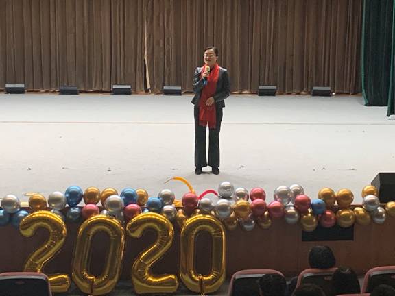 晚会在学院党委书记王丽玲的致辞中拉开了帷幕。王丽玲说到,各位同学从祖国的四面八方而来,荟萃于西电生科院,希望大家不负青春灼灼韶华,不忘初心、艰苦奋斗,谱写出一曲辉煌的时代华章。