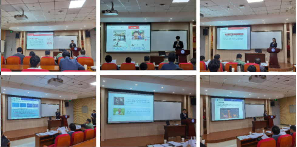 在答辩开始之前,主持人首先介绍了本次答辩的环节和评分规则。本次答辩主要有PPT展示、开放式必答题、评委老师自由提问三个环节。随后,参与答辩的12名同学分别围绕个人学习生活、对中国近现代科学家精神的学习心得内容、对新冠疫情期间我国医务工作者和科研人员事迹精神等内容进行PPT展示。展示结束后,在规定时间内回答随机抽取的开放式必答题和评委的问题。每位同学都准备的非常充分,在PPT展示环节尽显个人风采,对抽到的问题仔细分析思考、提出了自己的独到见解,并细致地回答了评委老师的提问,评委们对同学们的表现频频点赞。活动最后,大家一同合影留念。