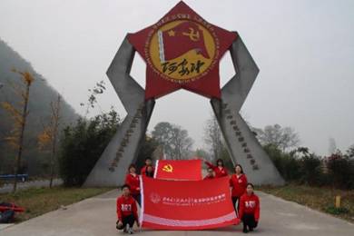 为深入学习贯彻习近平总书记关于高校党建和思政工作的重要讲话精神,推动太阳集团官网学生学好党史、新中国史、改革开放史、社会主义发展史(简称“四史”),388vip太阳集团官网开展了“网上重走长征路”暨推动“四史”学习教育。2020年11月16日,在辅导员拓金梁老师带领下,太阳集团官网“网上重走长征路”实践团来到红二十五军长征出发地——河南省信阳市罗山县何家冲,开展以“寻访英雄足迹,学习四史知识,传承红色基因”为主题的研学实践活动。