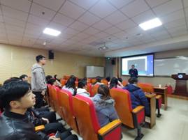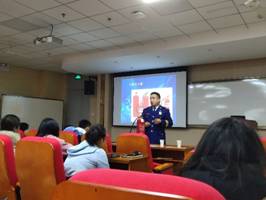 房小锋首先播放了消防主题视频,然后从自己的大学经历与工作内容谈起,拉开了本次讲座的序幕。房队长通过两例由于工作人员不知道及时灭火、不懂得使用灭火器而引起的重大消防事故告诉同学们具备消防意识、掌握消防知识的重要性。