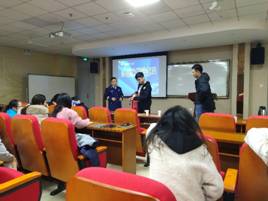 为提高学生的消防安全意识,培养消防应对能力,388vip太阳集团官网于12月4日下午2点30分,在G420报告厅举行了“消防安全培训”讲座。本次讲座邀请了西安消防支队高新区大队房小锋工程师为同学们指导培训。