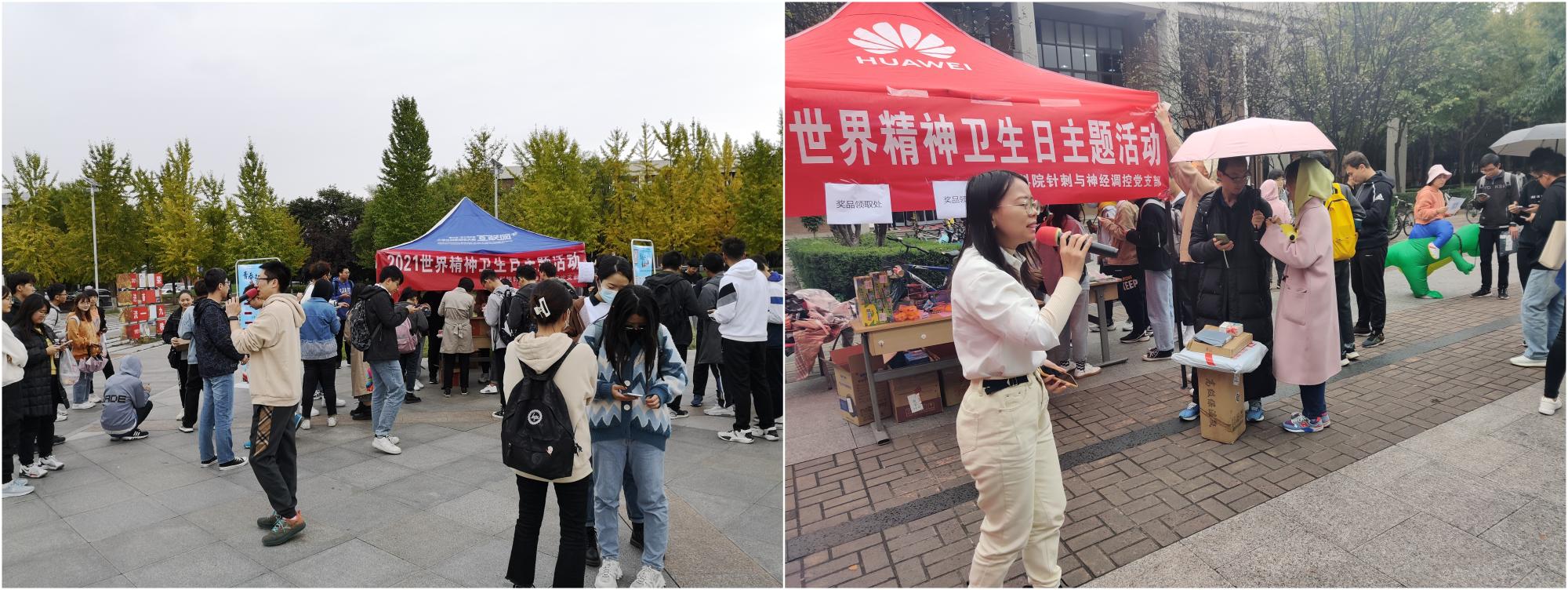 2021年10月15日,388vip太阳集团官网智能非侵入神经调控研究团队在学院党委的领导和支持下,联合针刺与神经调控教师、研究生党支部,共同发起本次世界精神卫生日主题宣传活动。这也是该支部继今年十月份赴渭南市精卫中心开展科技成果捐赠活动之后,进行的“科研服务社会”第二期系列活动。该系列活动的宗旨是,运用团队科研方向专业知识,反哺社会,为广大群众办实事。