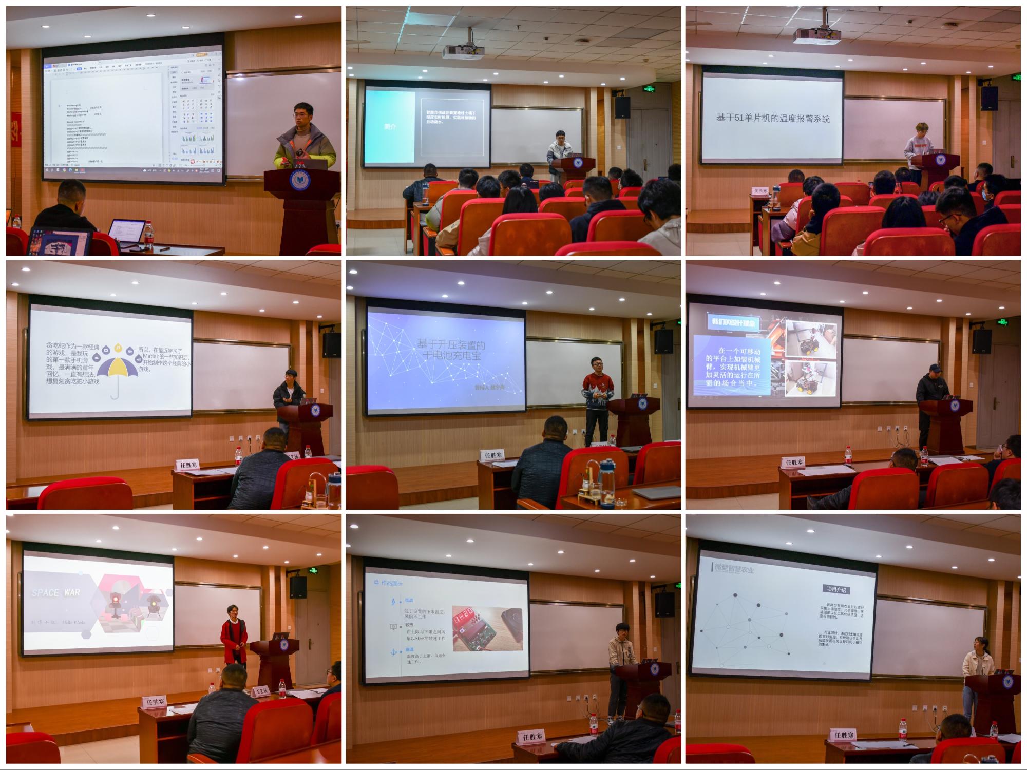 答辩现场,各参赛队伍依次上台展示,围绕作品的完成度、创新性和社会价值等方面详细介绍了参赛作品,同时也分享了在作品完成过程中遇到的困难以、解决方法以及收获。评委老师与各答辩选手进行深入的交流与讨论,针对各参赛作品的原理、核心技术、实用性和可行性等方面进行了提问,并对参赛作品做出了客观评价及优化建议。同时,评委老师们肯定了大家的创新能力和实践能力,希望同学们在今后的学习中要进一步提高科创能力和团结协作能力,努力做出更好的作品。