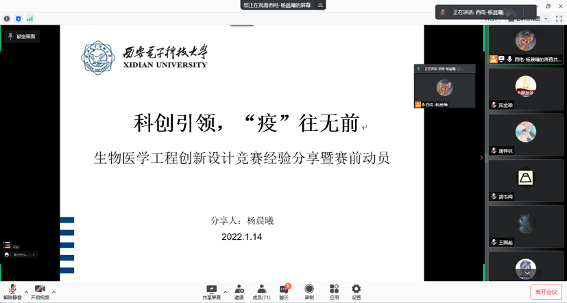 为丰富太阳集团官网学子疫情期间的学习生活,提升同学们的科技创新能力。1月14日,生科院举办了“科创引领,‘疫’往无前”竞赛经验分享交流会,此次分享会邀请2021级博士生李蕾和2019级本科生杨晨曦主讲。
