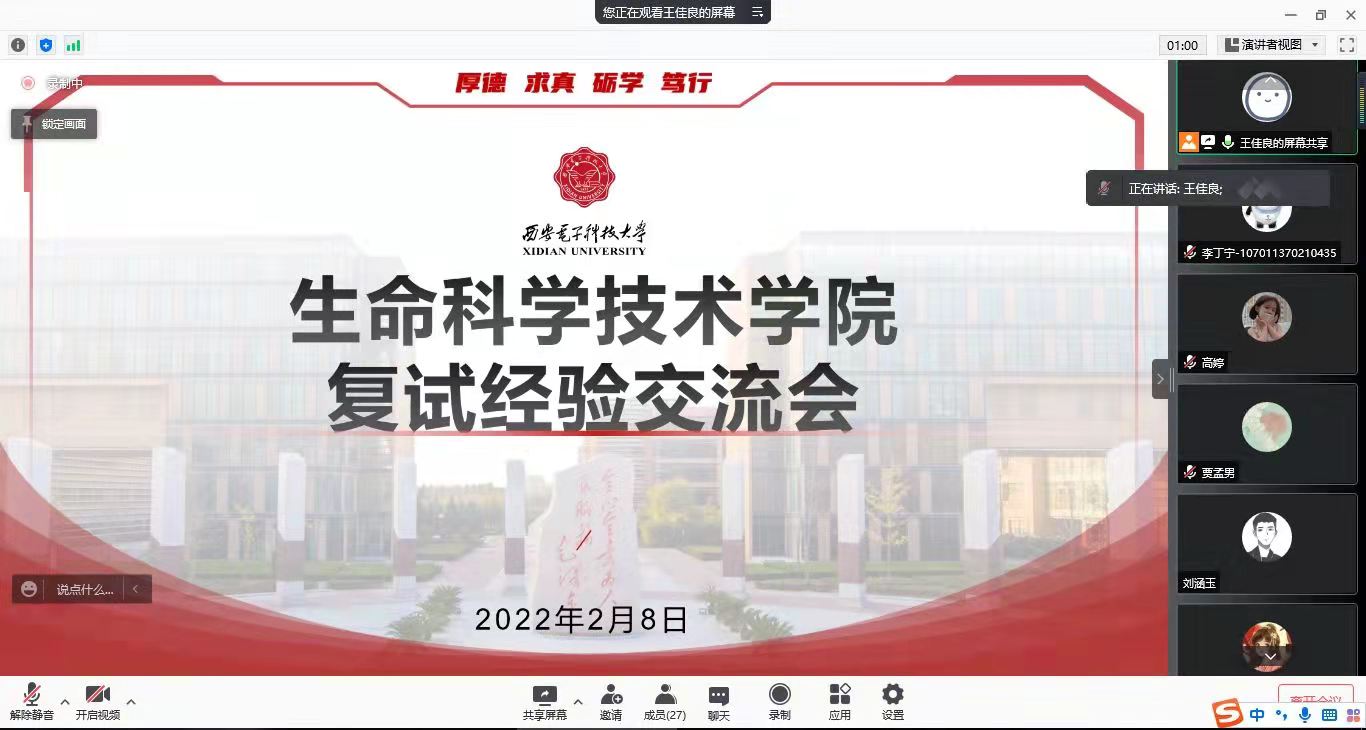 交流会上,四位研究生同学分别从复试前准备、联系导师、线上复试、专业课选择、复试调剂和心态调整等几个方面进行了经验分享,并结合个人经验向各位考研学生们分享了复试各个方面的具体内容。