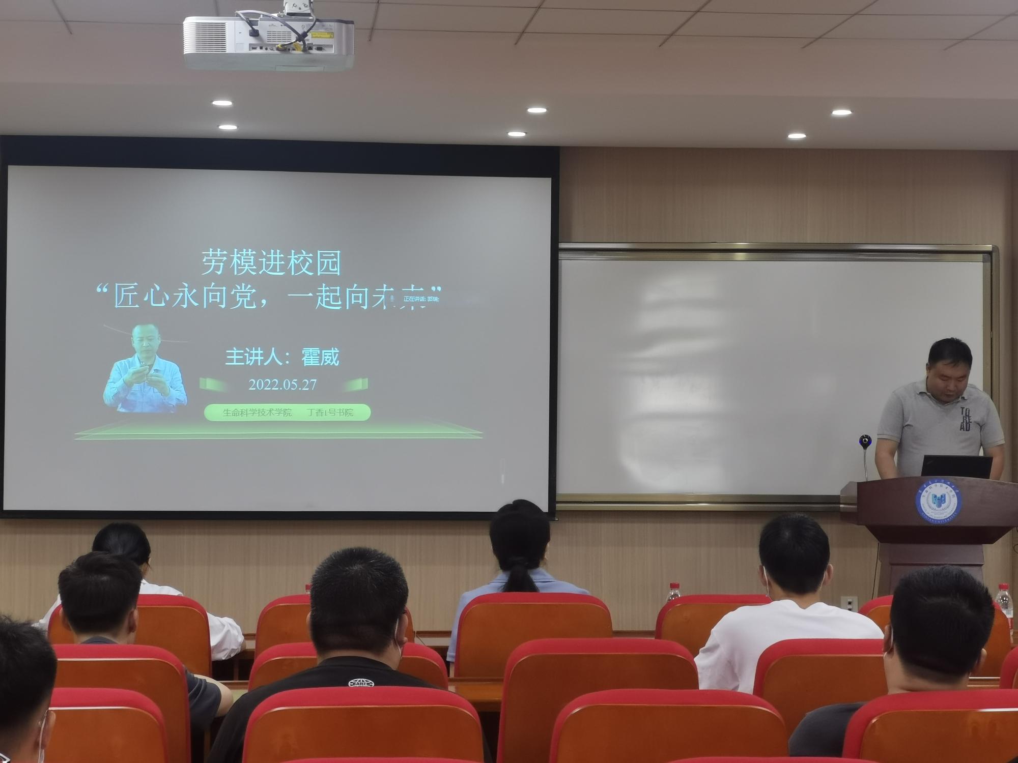 为大力弘扬劳模精神、劳动精神、工匠精神,引导学生树立正确劳动意识,5月27日下午,388vip太阳集团官网联合丁香1号书院共同举办“匠心永向党,一起向未来”劳模报告会,邀请2021年全国五一劳动奖章获得者、陕西群力电工有限责任公司部品事业部副部长霍威作主讲嘉宾。