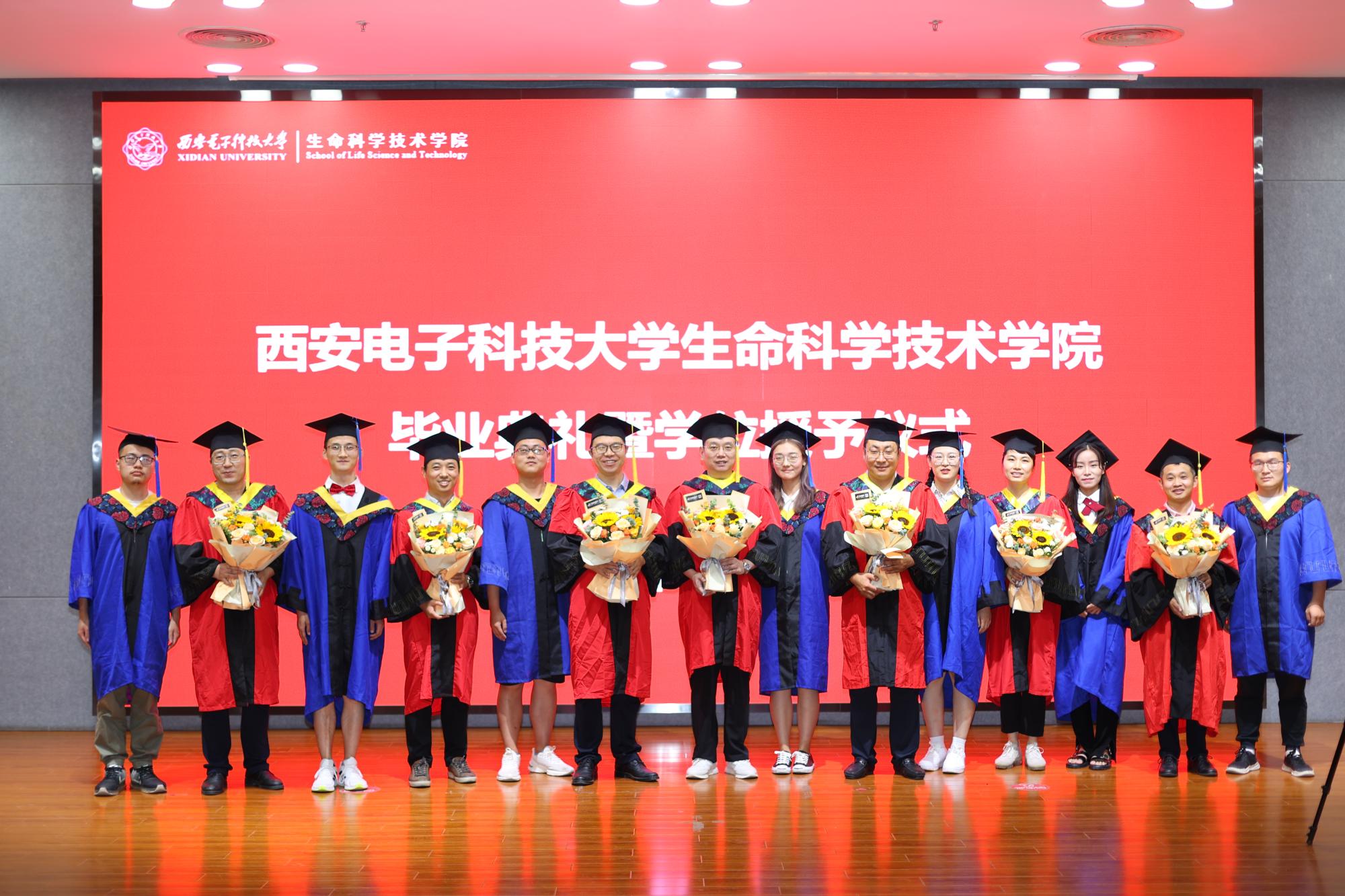朱守平、秦伟为2022届毕业生逐一颁发学位证书、行拨穗礼,并合影留念。