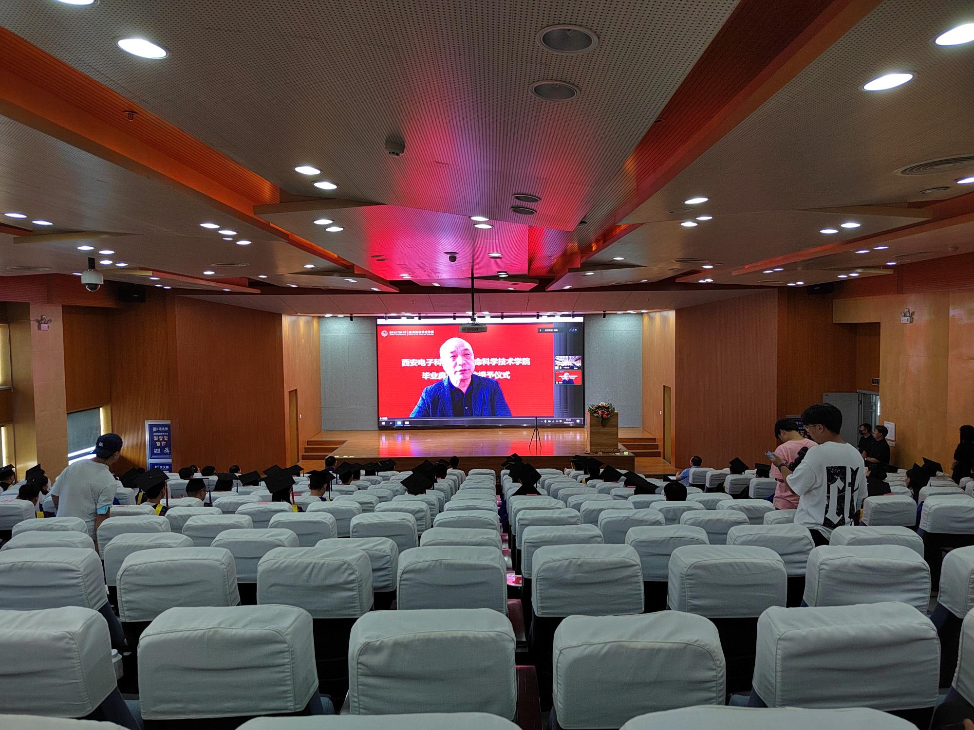 张敏代表硕士毕业生发言,她回顾了研究生期间校园生活点滴,表达了对学校、学院的依依惜别之情,希望大家都能够成为有理想、有担当、有使命感的医工交叉复合型人才,在祖国最需要的地方建功立业,开启新的人生篇章。让红色电波永不消逝,西电精神永久传承!