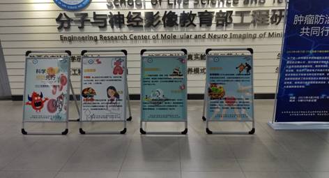 活动第一阶段面向在校大学生、研究生以及教职工等群体,通过展示癌症防治的各类海报、展板,分发、和宣传单,普及大家对癌症的正确认识,践行健康文明的生活方式,积极倡导每个人做自己健康的第一责任人,使大家知晓早预防、早发现、早诊断、早治疗是最有效的癌症防治措施。