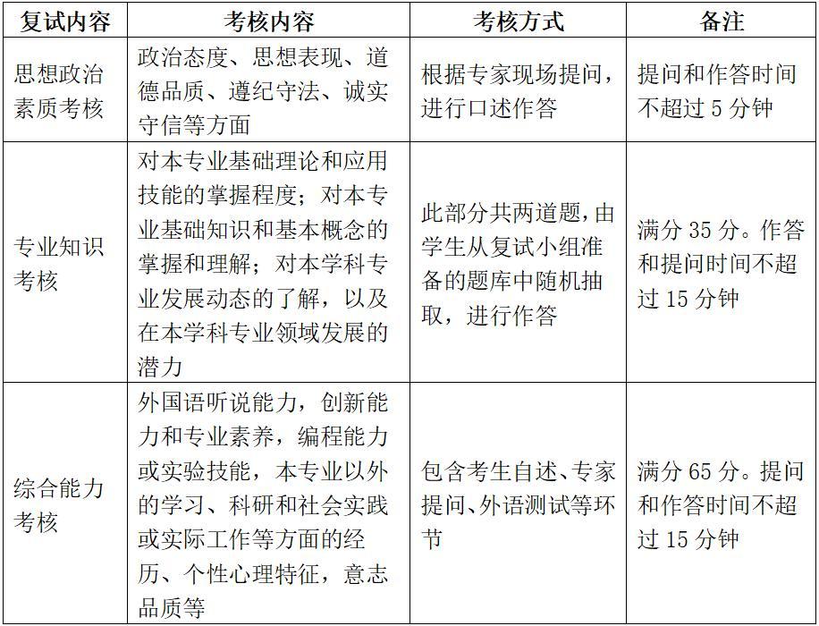 (2)复试内容:综合面试包含思想政治考核、专业知识考核和综合能力考核三部分。