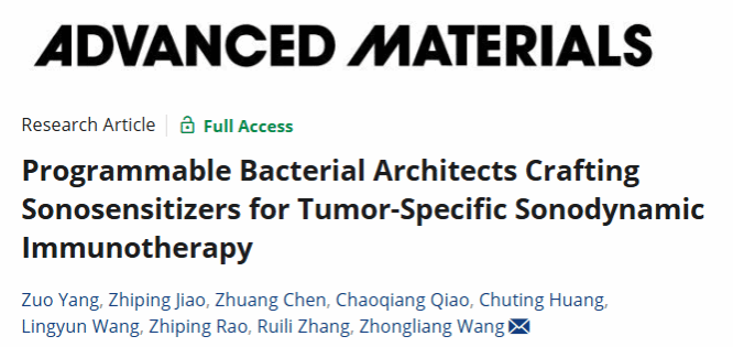 Z. Yang, Z. Jiao, Z. Chen, C. Qiao, C. Huang, L. Wang, Z. Rao, R. Zhang, Z. Wang, Programmable Bacterial Architects Crafting Sonosensitizers for Tumor-Specific Sonodynamic Immunotherapy. Adv. Mater. 2025, 202504206. https://doi.org/10.1002/adma.202504206